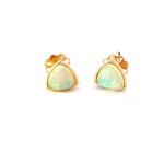 > Designer 2.78 Total Carat Weight Trillion Cut Opal Studs Set in 14 Karat Yellow Gold.