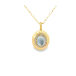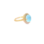 - 4.50 Carat Weight of One Oval Cabochon Cut Blue Topaz set on a Slice of Mother of Pearl and .22 Carat Weight of Round Brilliant Accent Diamonds